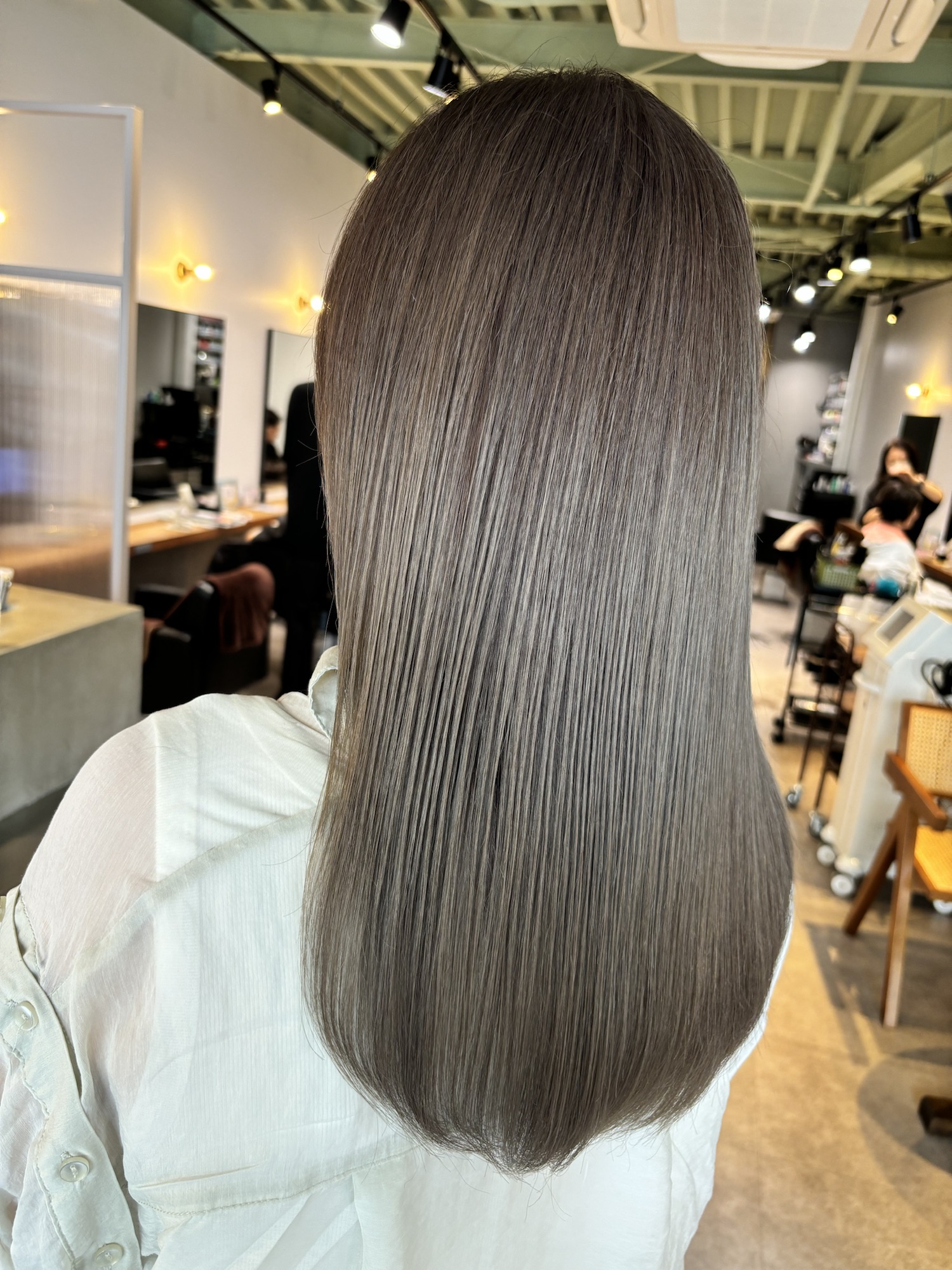 ✨イルミナカラーで透明感たっぷり✨柔らかなアッシュベージュで、光に透けるようなツヤ感と上品な色味を叶えました!秋冬でも重くならず、抜け感のある大人可愛いスタイルにおすすめです♡